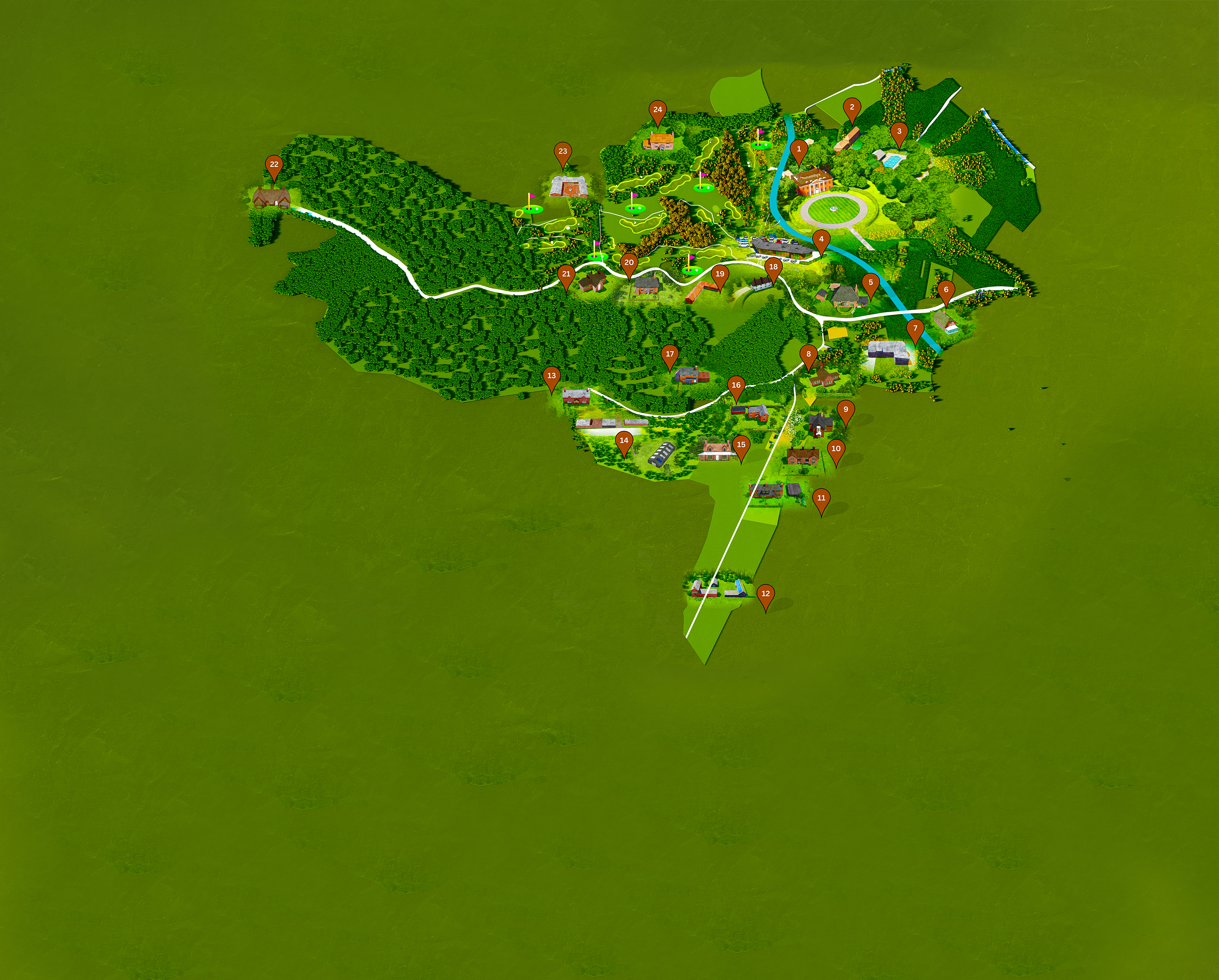 Our vision is to create a destination for leisure, recreation, and relaxation offering an exceptional blend of world-class golf, diverse sporting activities, and luxurious accommodations. An Estate Map with a replica of all structures along with their current pictures is provided below. The map is not to scale but should provide a good visual guide to the layout of the estate